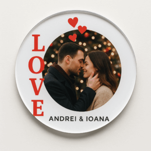 Magnet acrilic personalizat „LOVE” – 7,5 cm – Print UV color