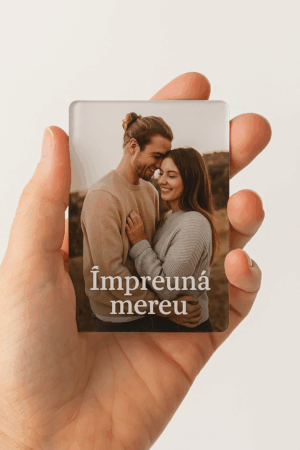 Magnet premium realizat din acrilic lucios, personalizat cu fotografia și mesajul tău preferat.