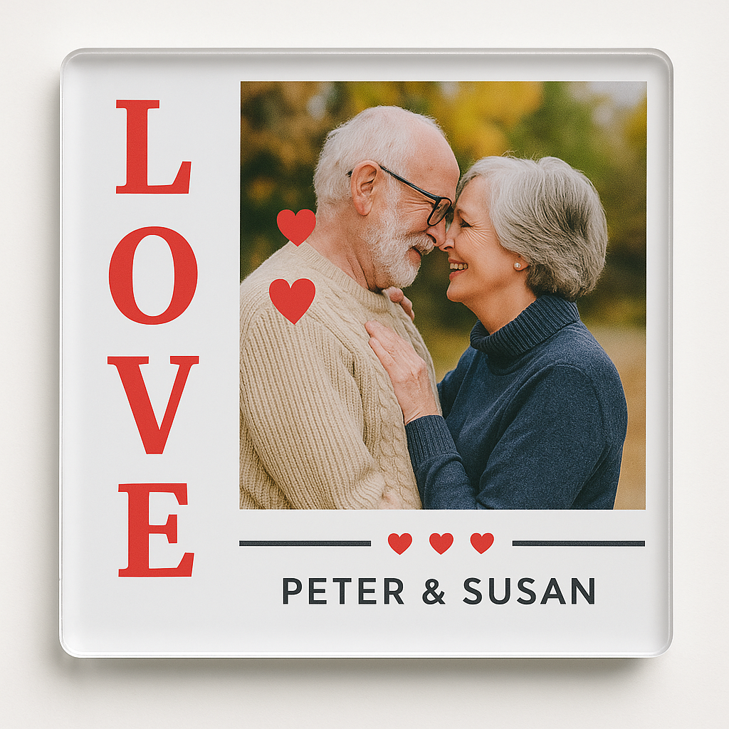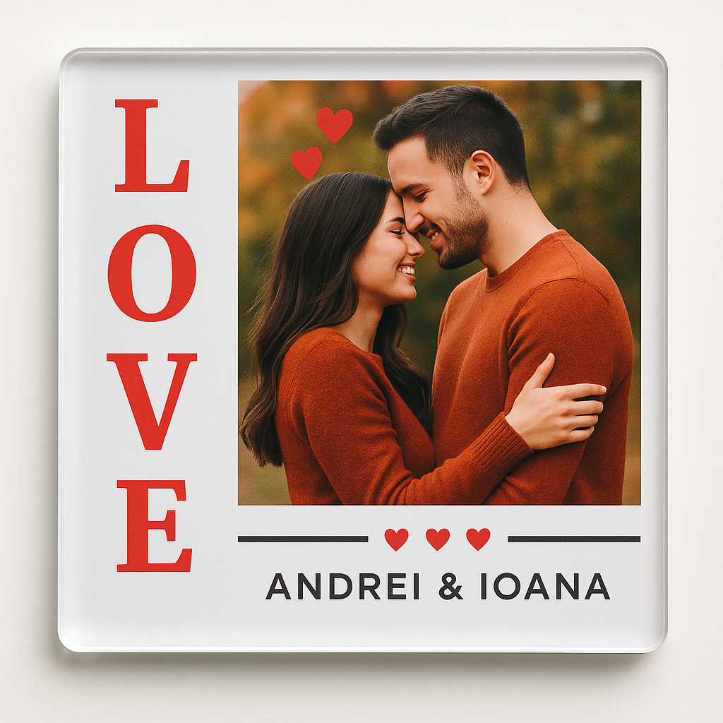 Magnetul acrilic LOVE este o amintire elegantă, modernă și durabilă – ideală pentru cupluri, aniversări, Valentine’s Day sau simple momente de bucurie.